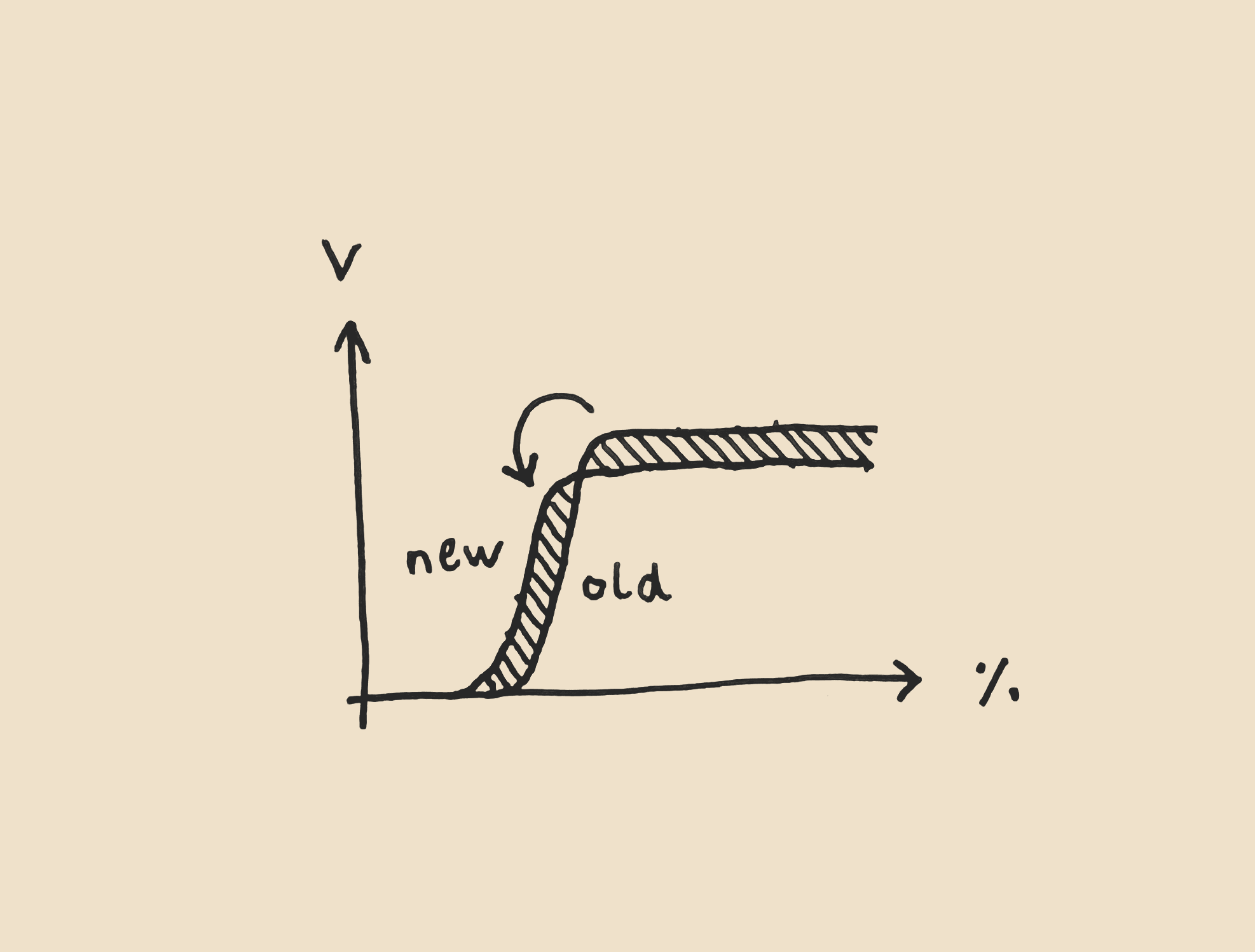 Here's a framing which I think captures some (certainly not all) of what you're saying. Imagine graphing out percentiles for your credence distribution over values the entire future can take. We can consider the effect that extinction mitigation has on the overall distribution, and the change in expected value which the mitigation has. In the diagrams below, the shaded area represents the difference made by extinction migitation.
