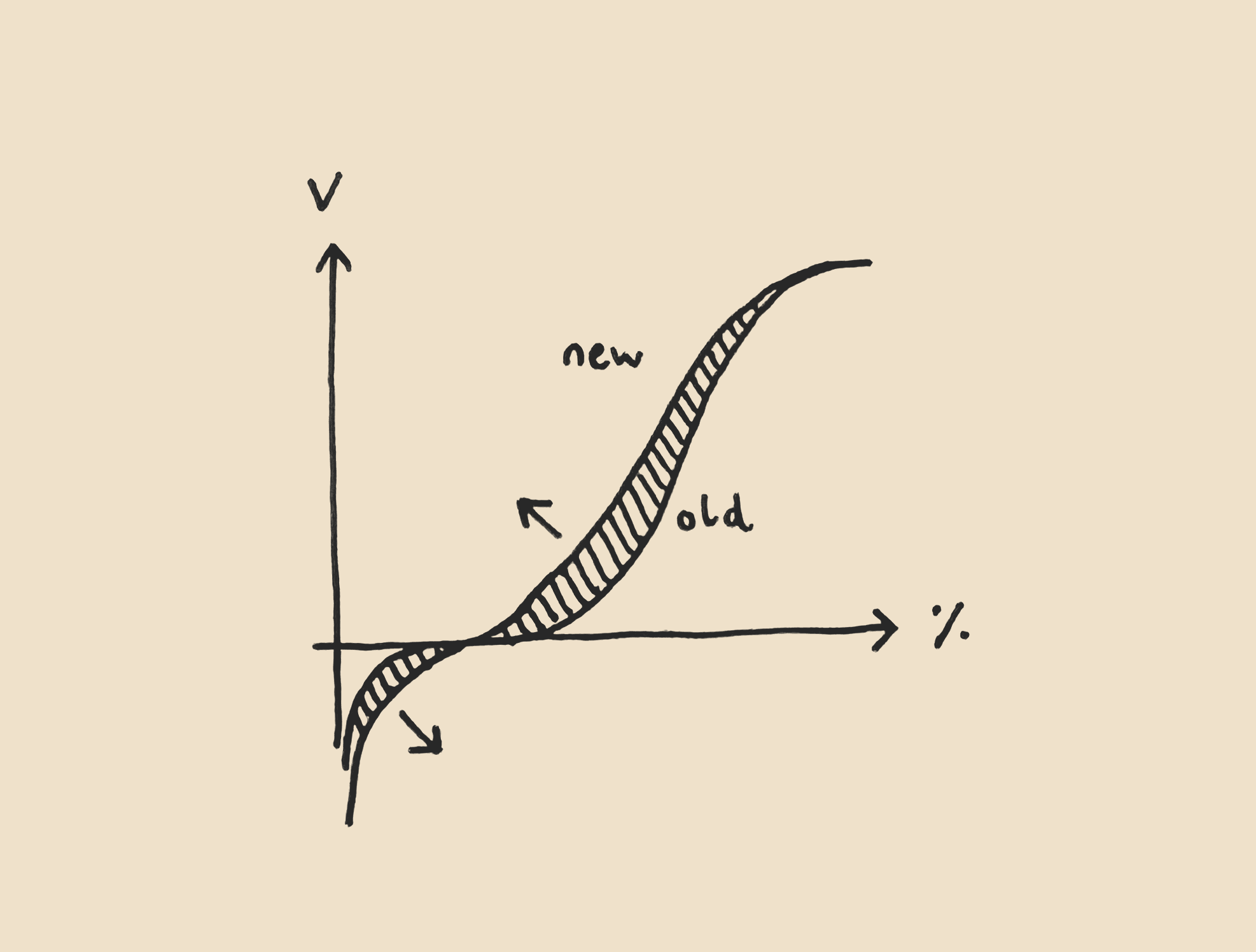 Here's one possibility: the fraction of your distribution that effectively zero value worlds gets is âpinchedâ, giving more weight both to better-than-zero worlds, and worse-than-zero worlds. Here you'd need to explain why this is a good thing to do.