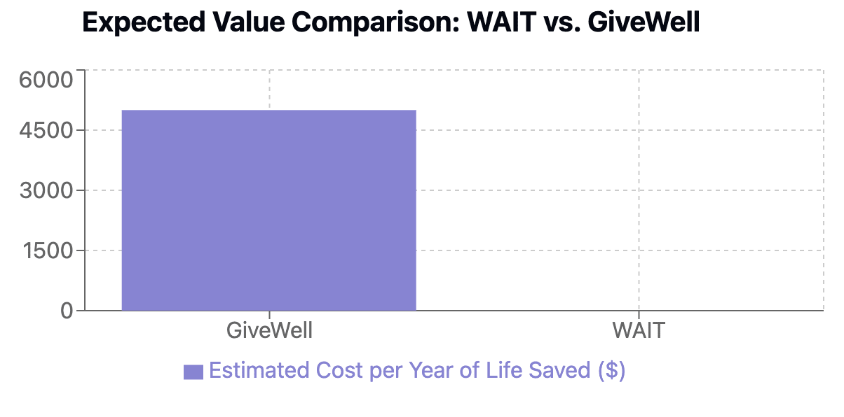 Our analyses suggest the most effective interventions could cost approximately $25k to WAIT for 1 effective researcher day, making WAIT approximately 2.2 million times as cost effective as leading GiveWell charities. Further evidence for this claim:
