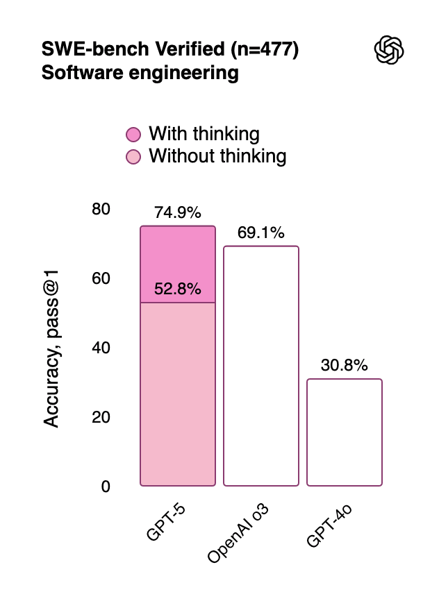 - Thinking: GPT-4 was released before OpenAI started using reinforcement learning for thinking, and performed far below expert levels on math, coding, and science tasks. GPT-5 (thinking) performs at a PhD level on similar tasks.
