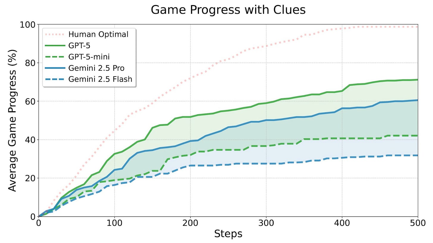 GPT-5 is a state-of-the-art text agent. GPT-5 leads on a new benchmark that measures how well AI systems perform in interactive long text-based games, which are examples of challenging exploratory environments. No AI systems can beat the games without clues, and none are as capable as humans—but GPT-5 does the best of models tested.
