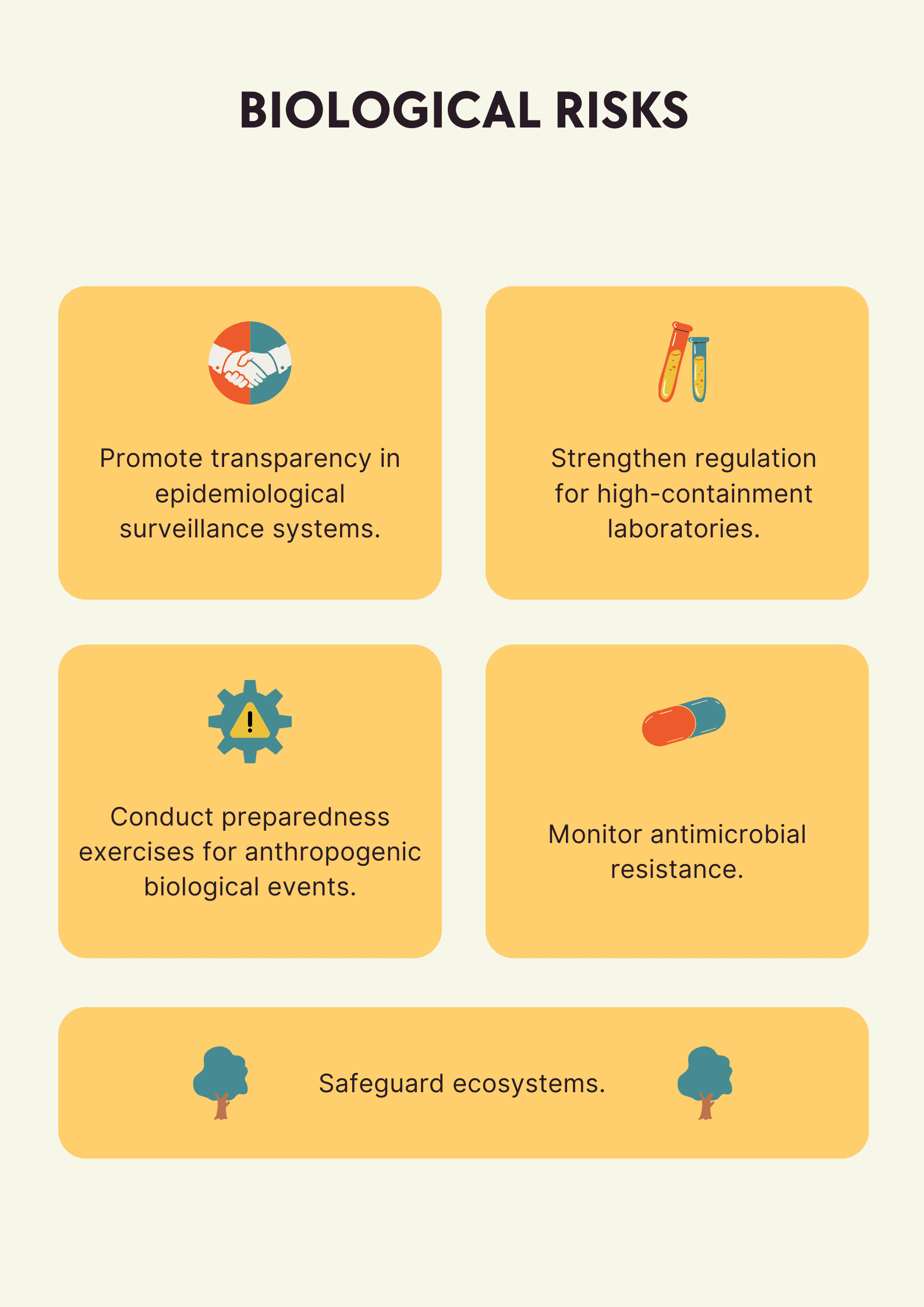 In this context, we recommend that Latin America stay informed to face other emerging threats. Lack of preparation jeopardizes its stability and progress, significantly impacting key areas such as the economy and public health. Based on the three risks of interest, a series of measures are proposed for the countries of the region: