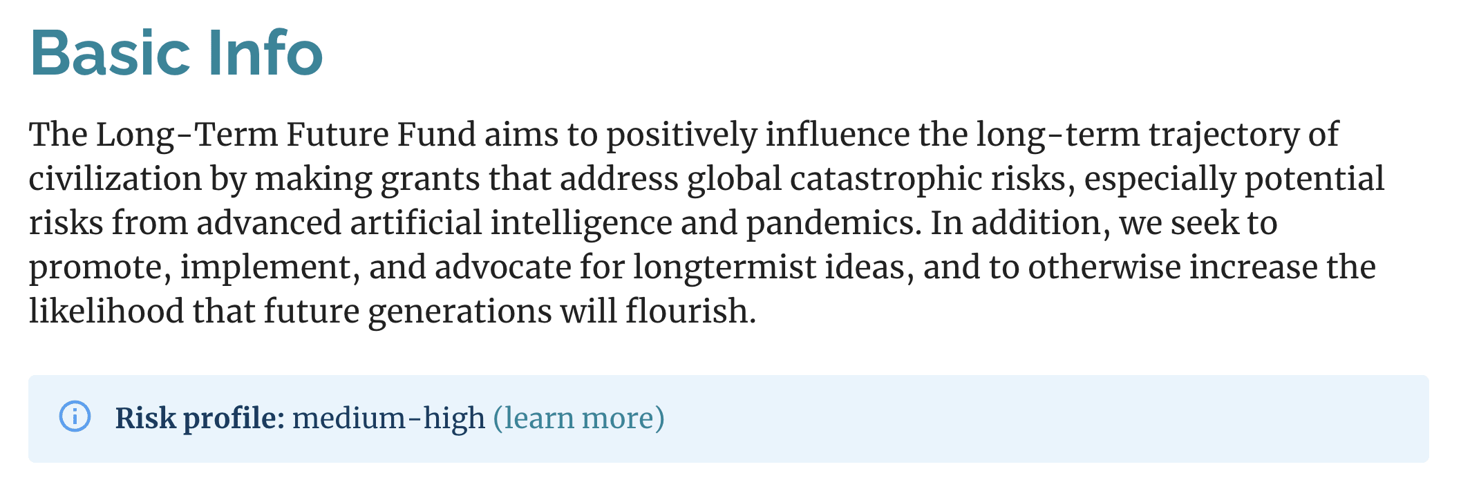 But hope is not a strategy. This is not the first time that people have complained about LTFF's risk profile. Unfortunately, I would be surprised if it's the last. Nonetheless, I'd be keen to know how we(I) can improve our communications here, to make this point as unambiguous as possible and reduce future confusions or missed expectations.