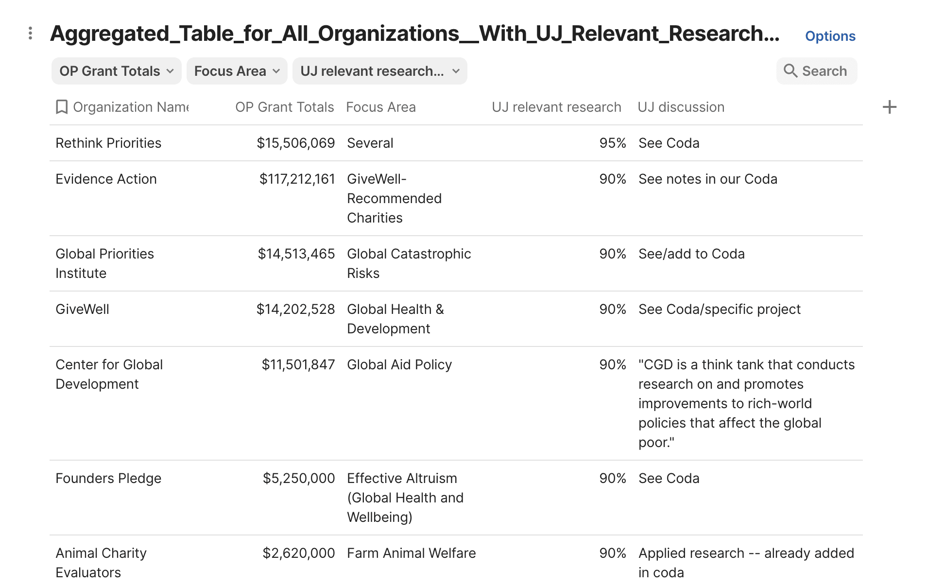 And here's a take, just using Open Phil data and my ad-hoc judgment, as a start:
