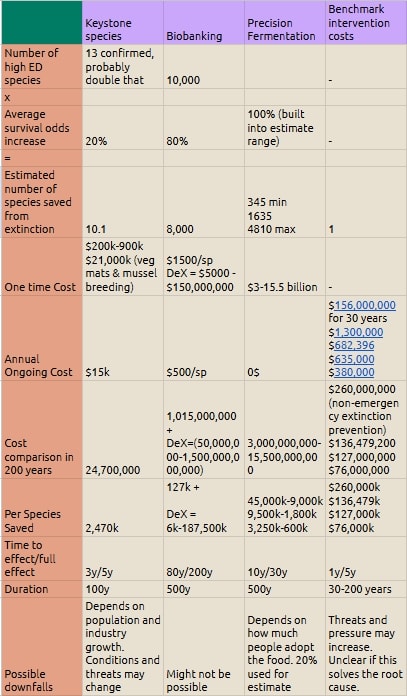 We acknowledge that especially biobanking may sound quite unnatural. Still, we don’t want to exclude that if it helps us enormously to save species. There are also a lot of uncertainties: the interventions may not work as assumed, but these seem to have a good expected value. There are also a lot of other questions and we hope to write more about them at some point - or discuss in the comments!