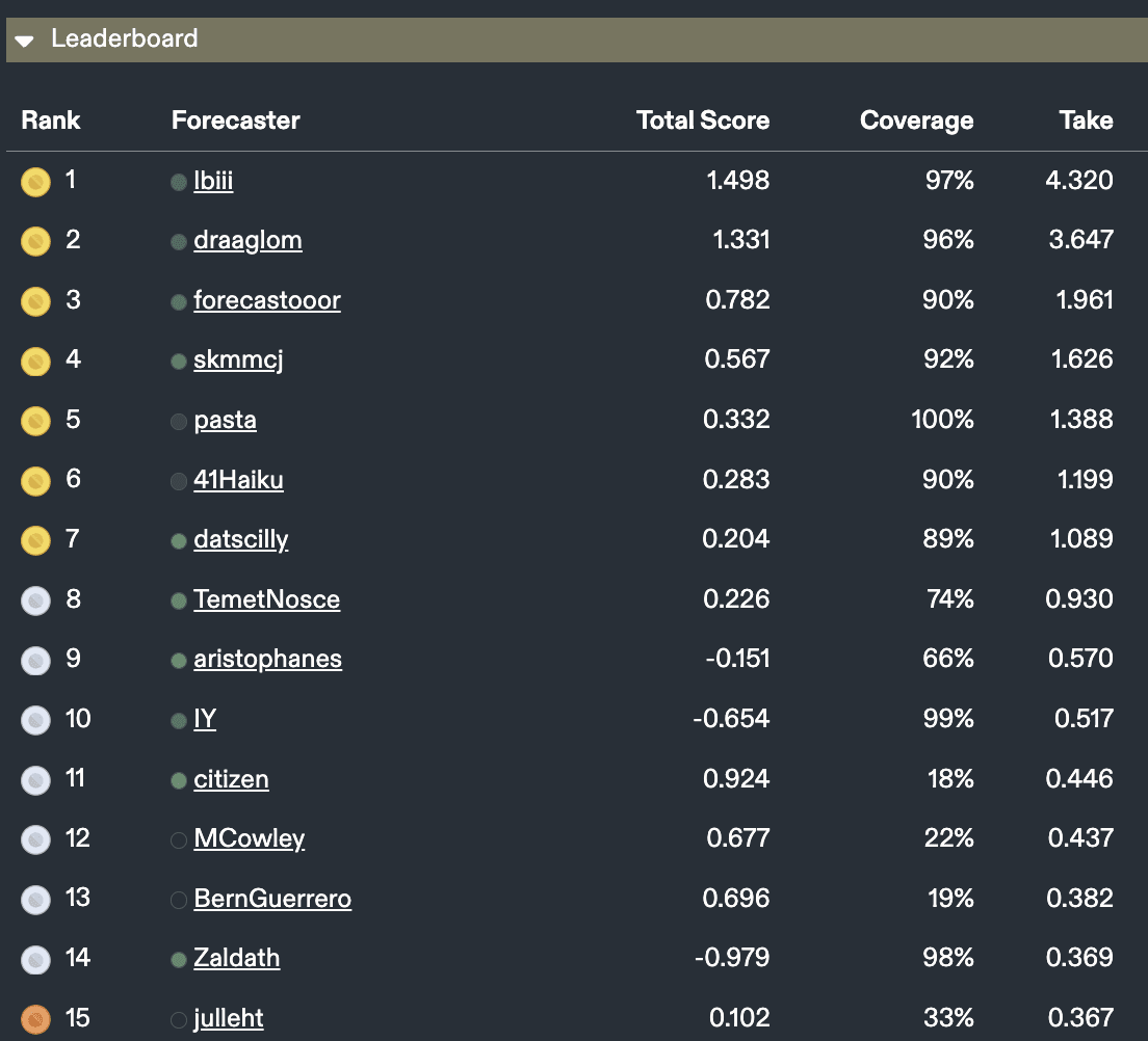 If your Metaculus medal case is already well-stocked, continue forecasting.