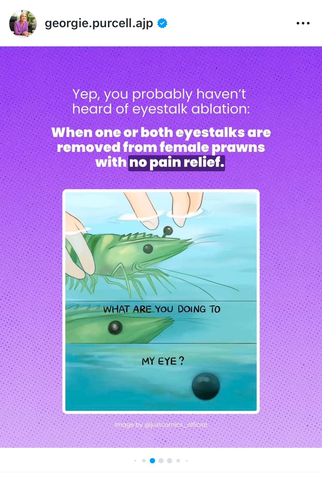 She’s just posted on instagram about shrimp eyestalk ablation. This is the first time I’ve seen this mentioned outside of the Effective Altruism context and it suggests to me that the idea is gaining attention.