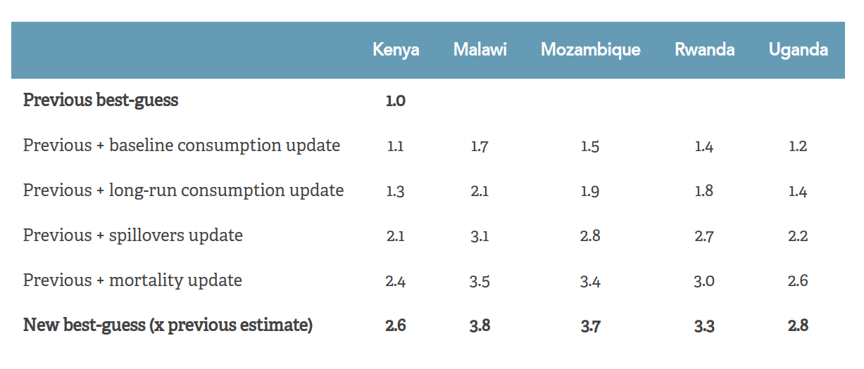 even if we took the 46% all-cause mortality effect at face value, our cost effectiveness estimate in Kenya would only move from 2.5x to 2.8x