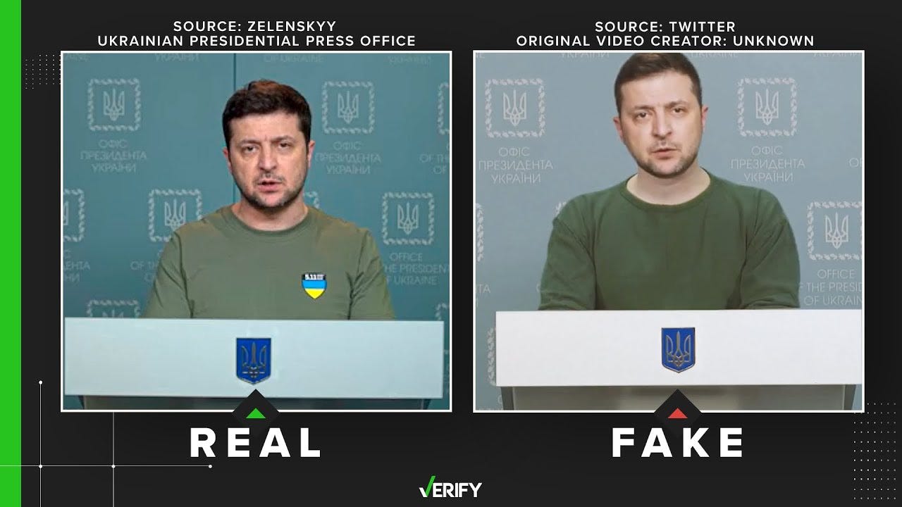 A fake video generated by AI showed Ukrainian President Volodymyr Zelensky supposedly surrendering to Russian forces in March of last year.
