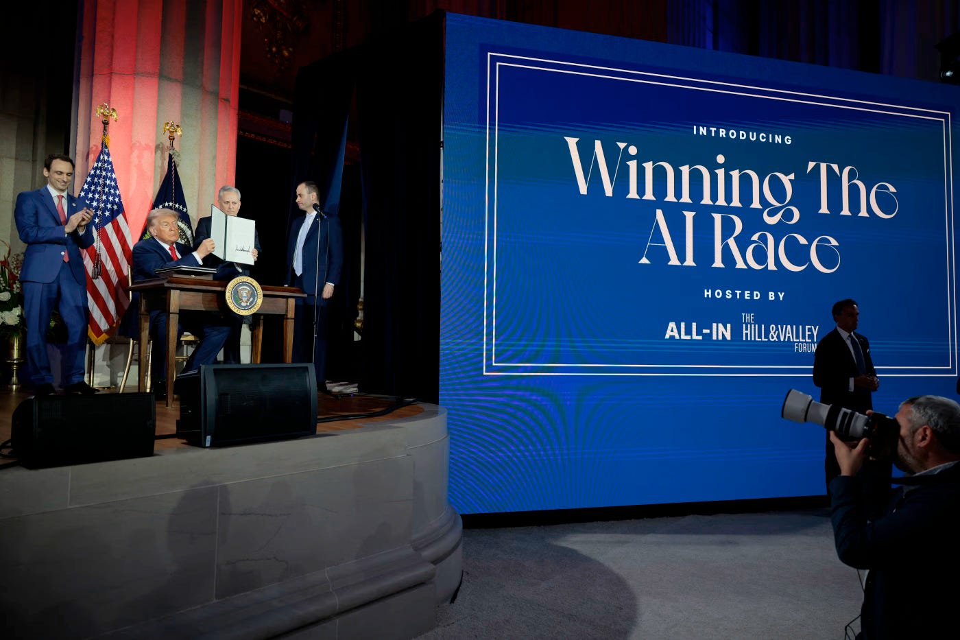 On the 23rd, the White House released its AI Action Plan. The document is the outcome of a January executive order that required the President’s Science Advisor, ‘AI and Crypto Czar’, and National Security Advisor (currently Michael Kratsios, David Sacks, and Marco Rubio) to submit a plan to “sustain and enhance America's global AI dominance in order to promote human flourishing, economic competitiveness, and national security.” President Trump also delivered an hour-long speech on the plan, and signed three executive orders beginning to implement some of its policies.
