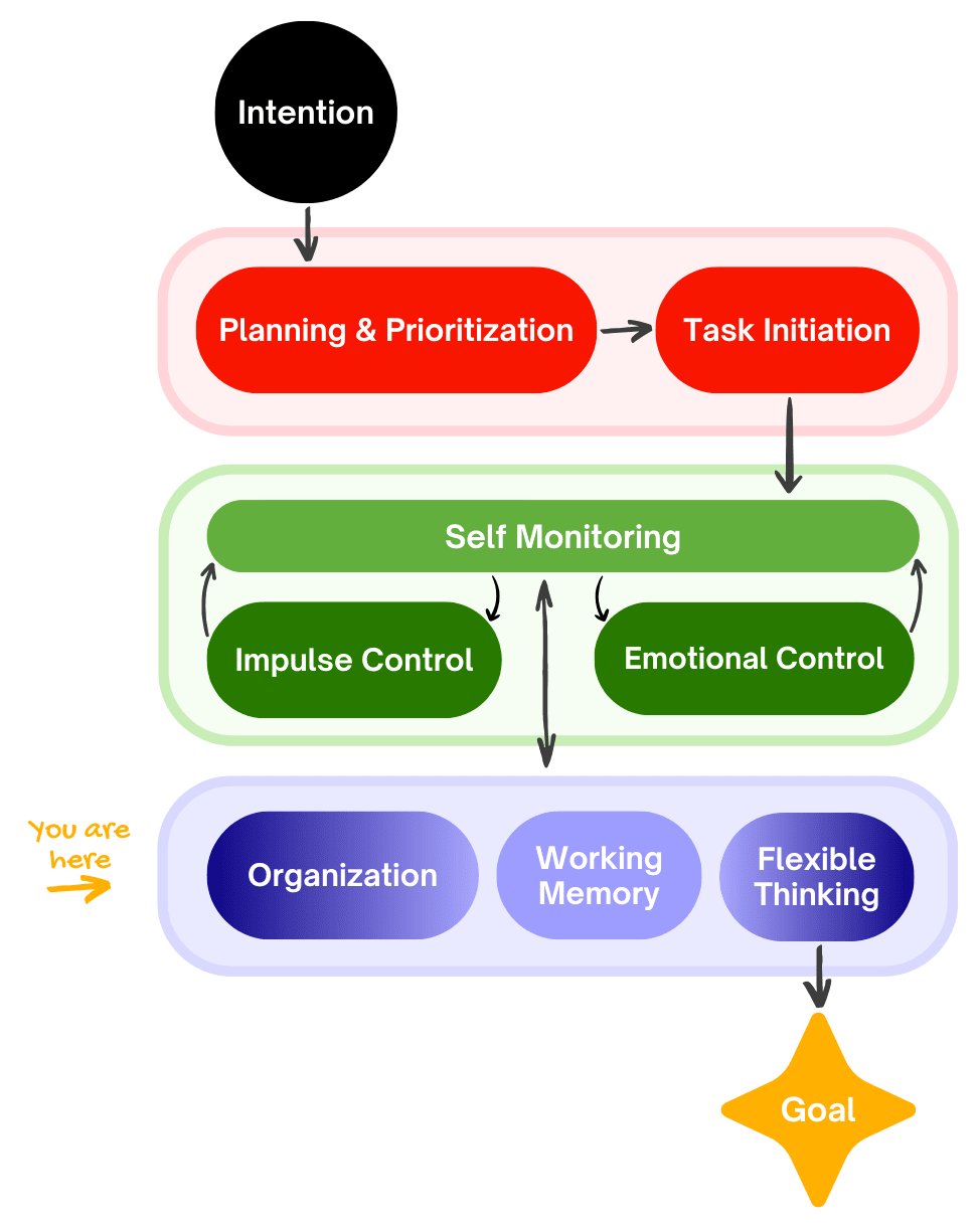 As we begin the final(?) installment of the series, I hope it’s clear now how the many parts of Executive Function work together to take someone from an initial notion about what they “want to do,” to actually doing it.