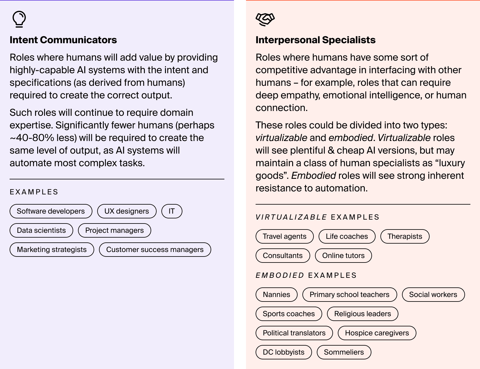 Roles where humans will add value by providing highly-capable AI systems with the intent and specifications (derived from humans) required to create the correct output.