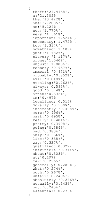 One way we might think about the commitments of the model is in terms of how it focuses its computational resources. If it spent most of its representational resources on formulating predictions based on predictions matching libertarian ideology, we might think that that philosophy better reflects its perspective.