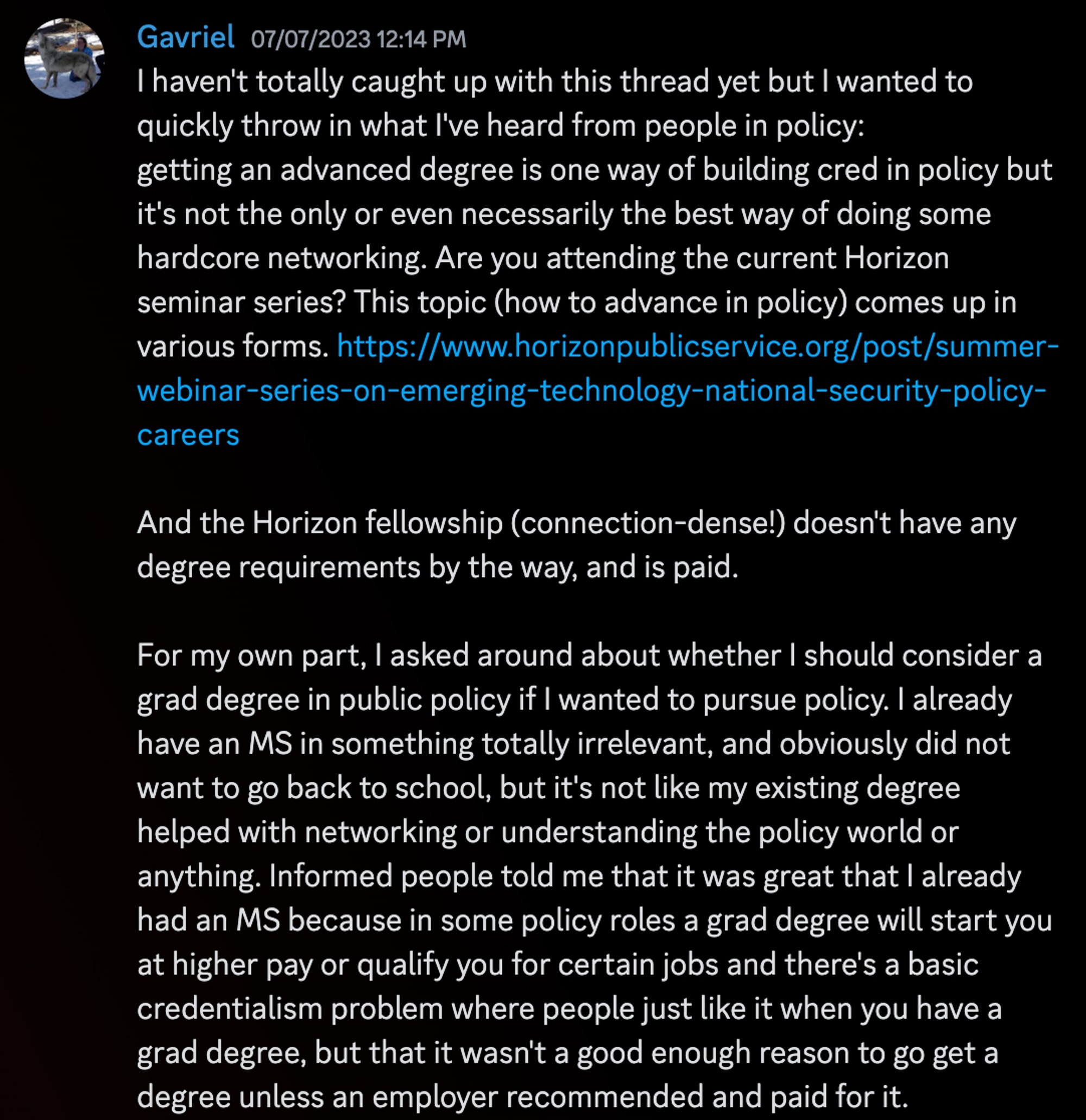 Gavriel weighs in based on her own experience in considering a policy degree: