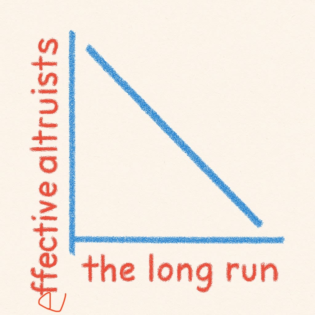 Yet in the long run, if those who are most effectively altruistic have less kids, this could lead to a gradual but steady decline in effective altruists, as shown by this graphical model of the situation: