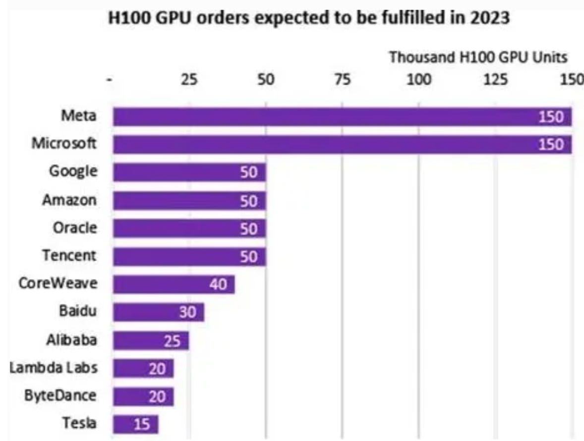 Meta is investing in compute to build open-source AGI. Mark Zuckerberg announced that Meta plans to have 350,000 of Nvidia’s most advanced GPUs, the H100, by the end of 2024. This is more than ten times the number of GPUs in Inflection AI’s cluster, announced last summer. The only company expected to purchase as many H100s as Meta is Microsoft.