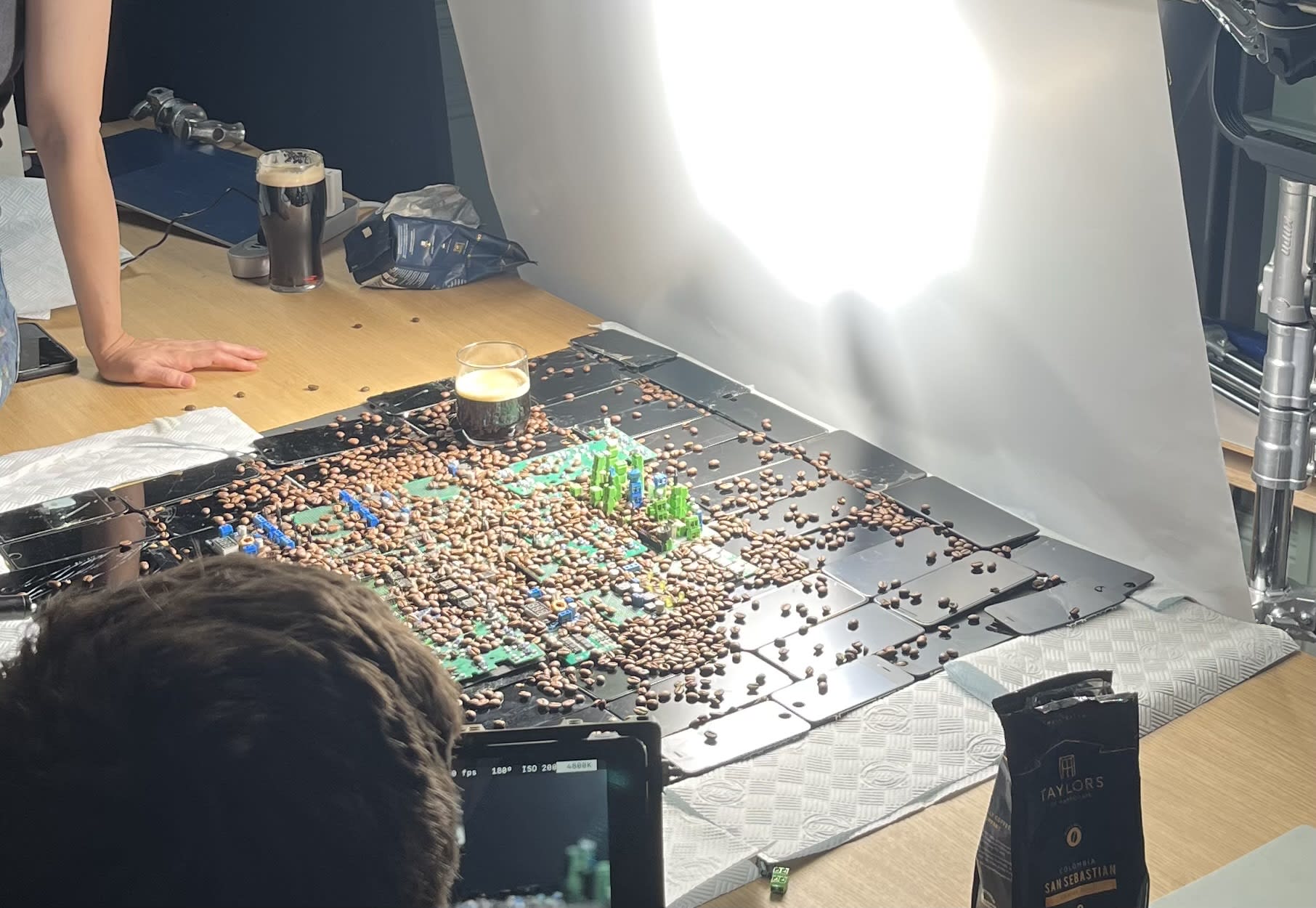After the AI video launched, I posted these “behind-the-scenes” photos on Twitter, which people seemed to like. (Phoebe and her team cleverly used macro lenses to make the tiny “circuitboard city” look big!)