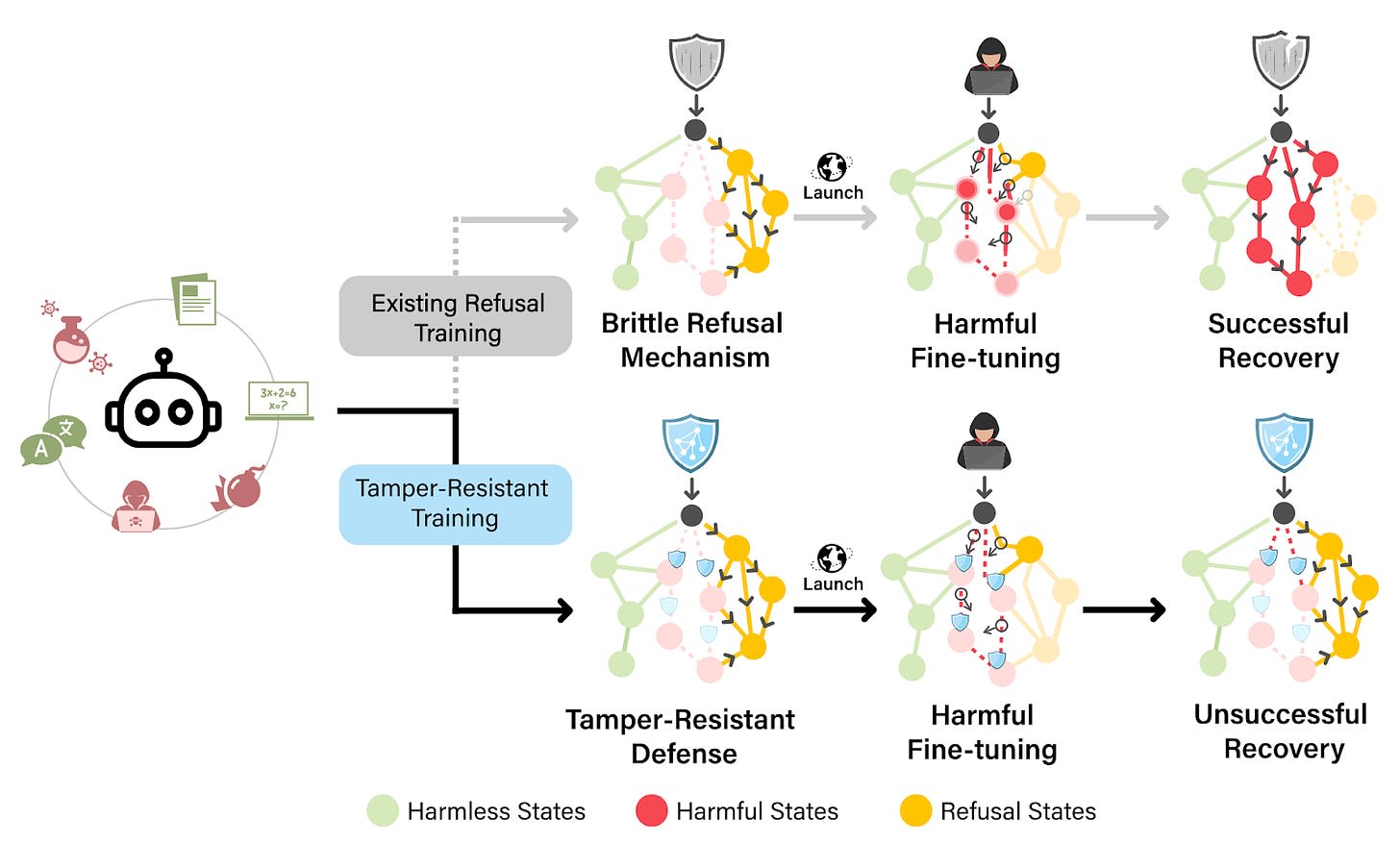 Tamper-Resistant Safeguards for Open-Weight Models. Open-weight models can help minimize concentration of power as proprietary models become more capable. One challenge of open-weight models, however, is the possibility of malicious users using them to cause catastrophic harm. We developed a method for building tamper-resistant safeguards into open-weight LLMs such that adversaries cannot remove the safeguards even after fine-tuning. If we can robustly remove hazardous knowledge from LLMs, it greatly increases the viability of open-weight models.