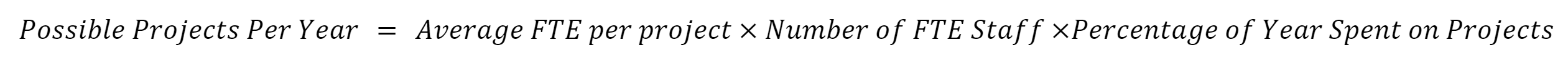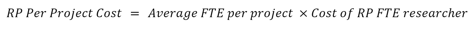 Estimating RP Per Project Cost is a matter of estimating all-in annual costs per staff on a project, how many people in full-time equivalent (FTE) work on a project, and the project duration in years.