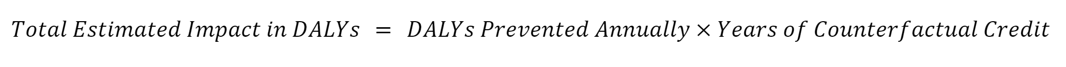 - Multiplying the estimated annual DALYs averted figure by an estimate of the number of years of counterfactual credit