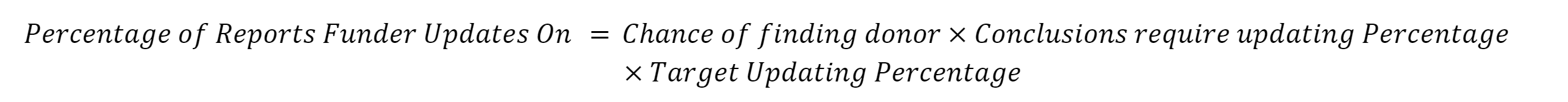 - 27% chance of a report a target updates on (90% chance of creating a report worth updating, and a 30% the funder actually updates)