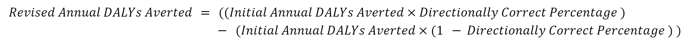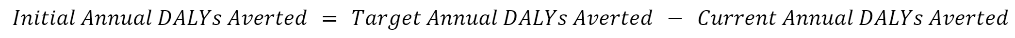 Note, it’s possible for the both Initial Annual DALYs Averted and Revised Annual DALYs Averted to be negative numbers.