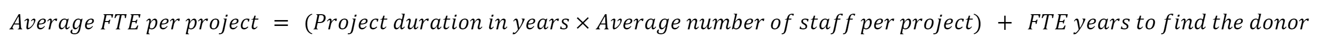 If you are already working with the donor, FTE years to find the donor can be set to 0 (along with Chance of finding donor being set to 100%).