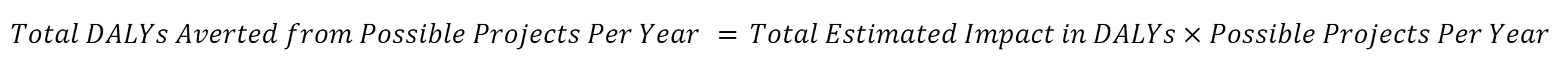 - The cost per DALY by dividing the per project costs from (5) with the total estimated DALYs from (4)
