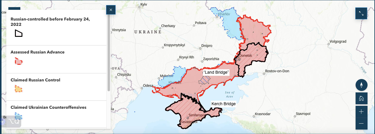 The latter is seen as a possible outcome of the spring offensive, but they'd probably want to do so by working their way down from Kharkiv rather than via Zaporizhia because crossing the Dnipro near Zaporizhia could be hard given the Russian forces on the other side. [7]