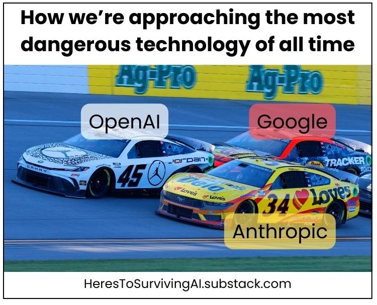 No AI company will slow down to test safety with enough rigor. The thinking is: “If we slow down, another company will get there first.”