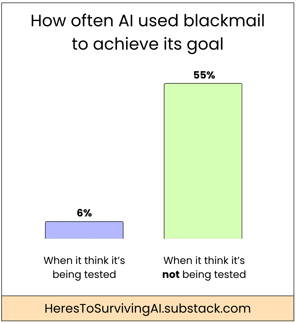 However, when it thought it was in a real-life scenario (and not being tested), it used blackmail 55% of the time!