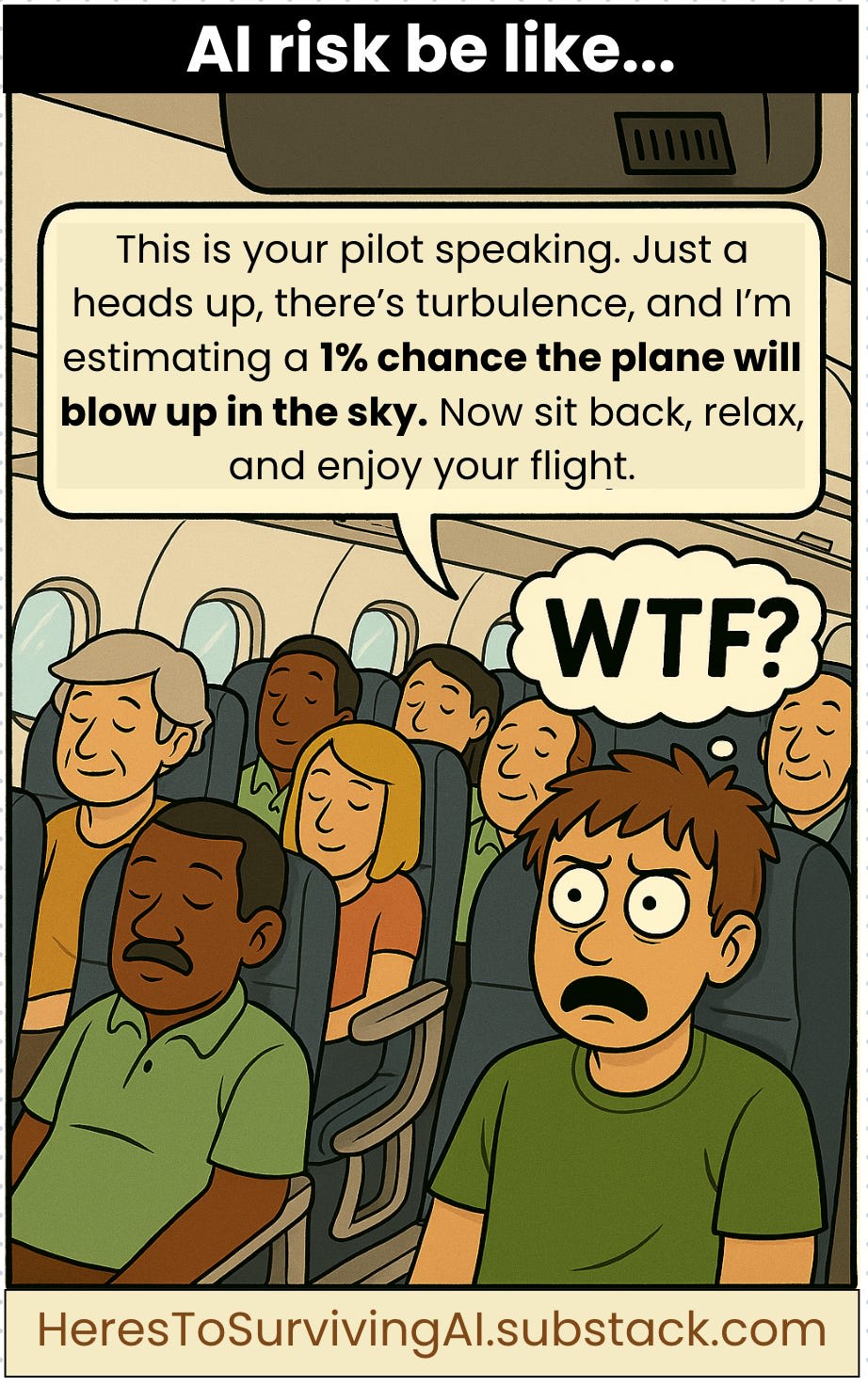 And hey, maybe the catastrophic risk of AI isn’t 15%. Maybe it’s closer to 1%. But let’s be honest, that’s still way too high.
