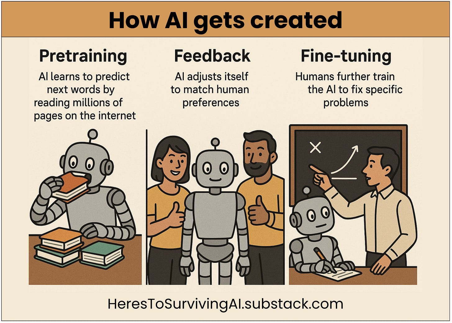 First, the AI gets pretrained. That means it reads billions of words of text.
