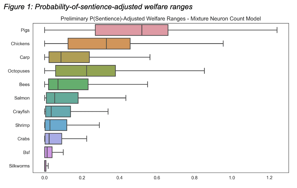 The Rethink Priorities Welfare Ranges have absurdly wide confidence intervals. So wide that I would argue they're almost worthless.