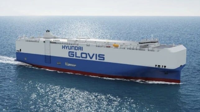 Rendering of the design of the Hyundai Glovis, a 10,000-unit RoRo ship to be built by CSSC.