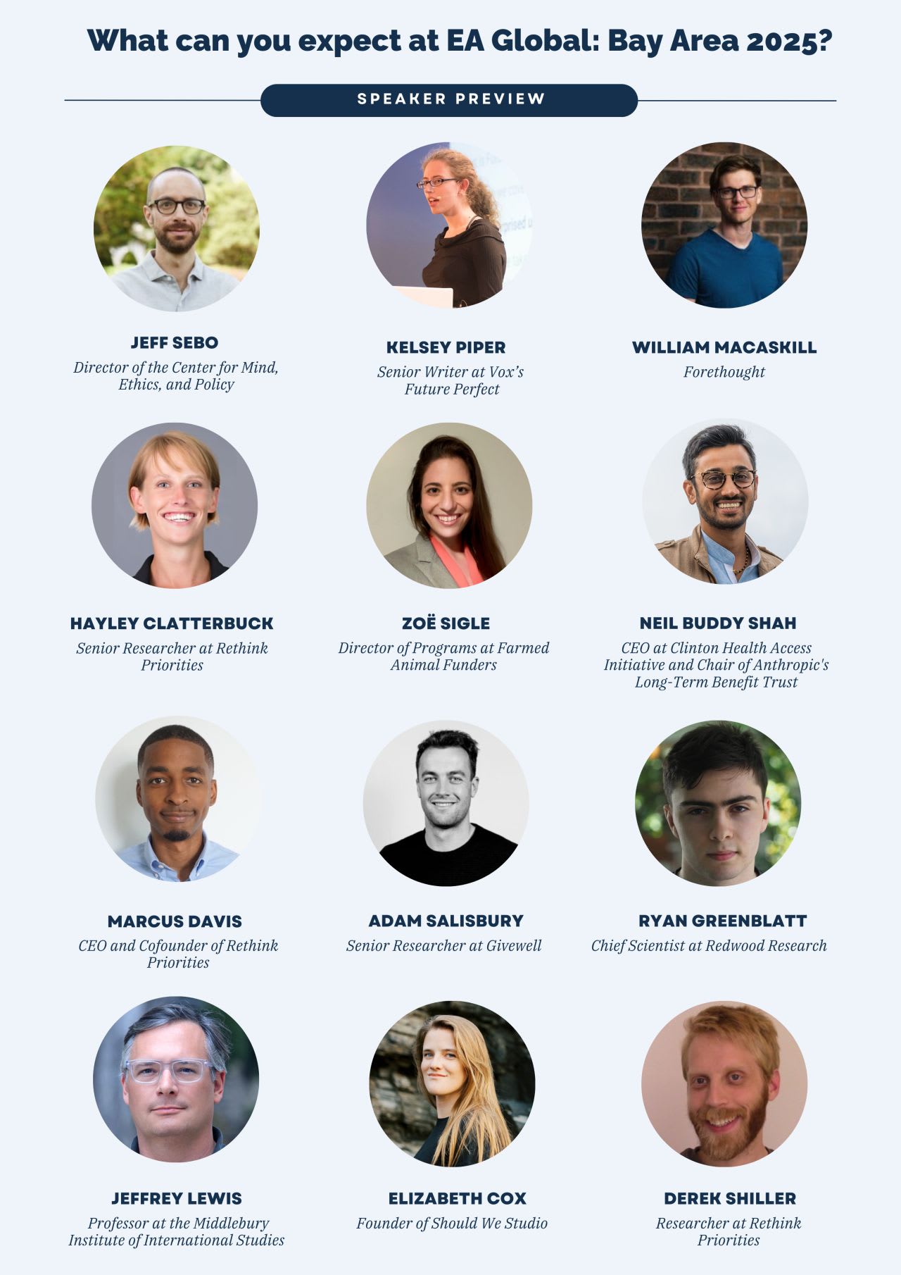 We wanted to share a few quick updates and reminders about EAG: Bay Area, happening Feb. 21–23. We’d love for you to apply (deadline Feb. 9th), and encourage friends and colleagues (especially ones in/near the Bay Area) to apply, perhaps by sharing this post!