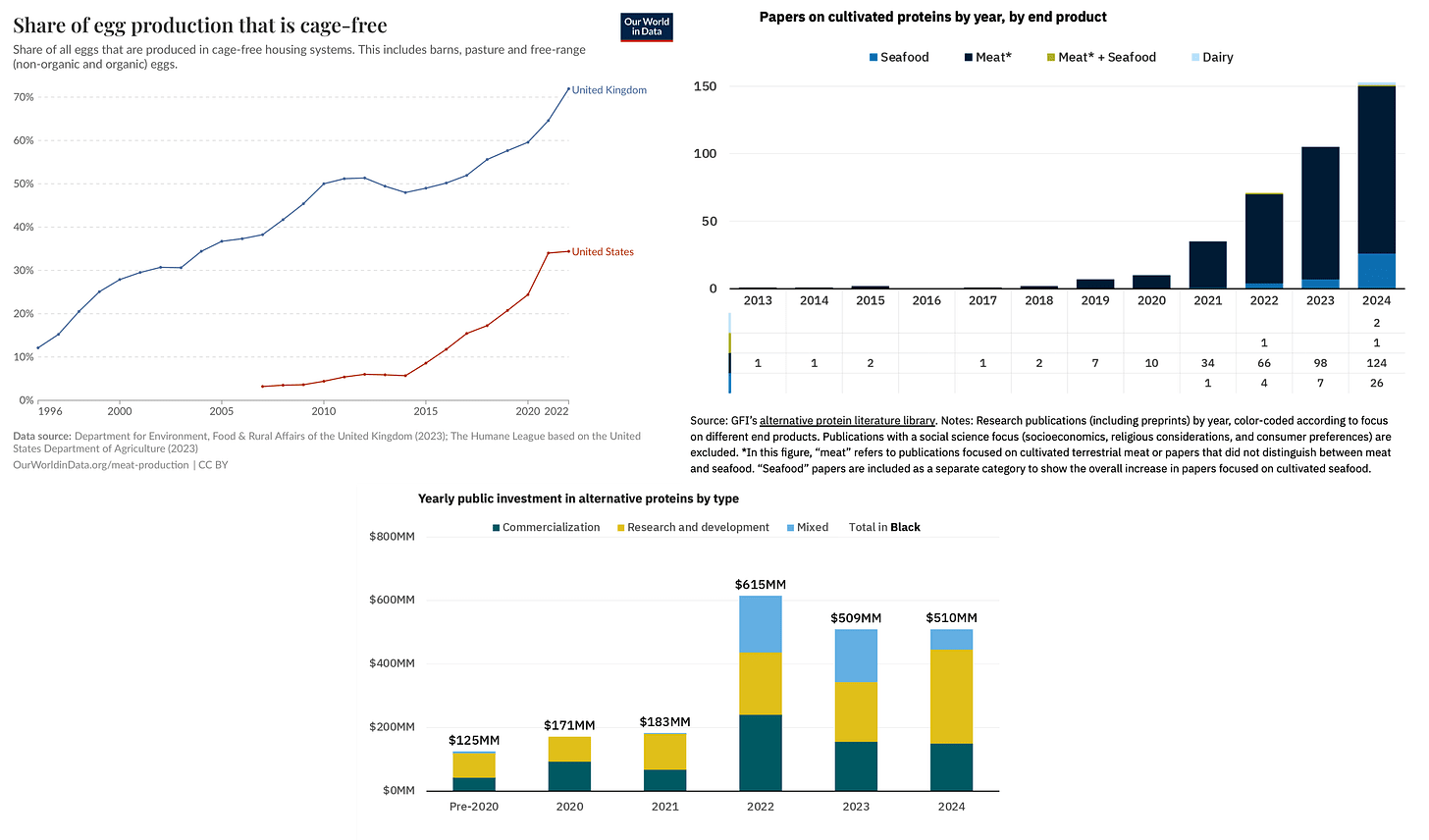 1. Celebrating progress for animals - We need to continue to share wins and celebrate meaningful improvements that have the potential to help animals, this helps maintain motivation and demonstrate that positive change is possible (see graphs below).