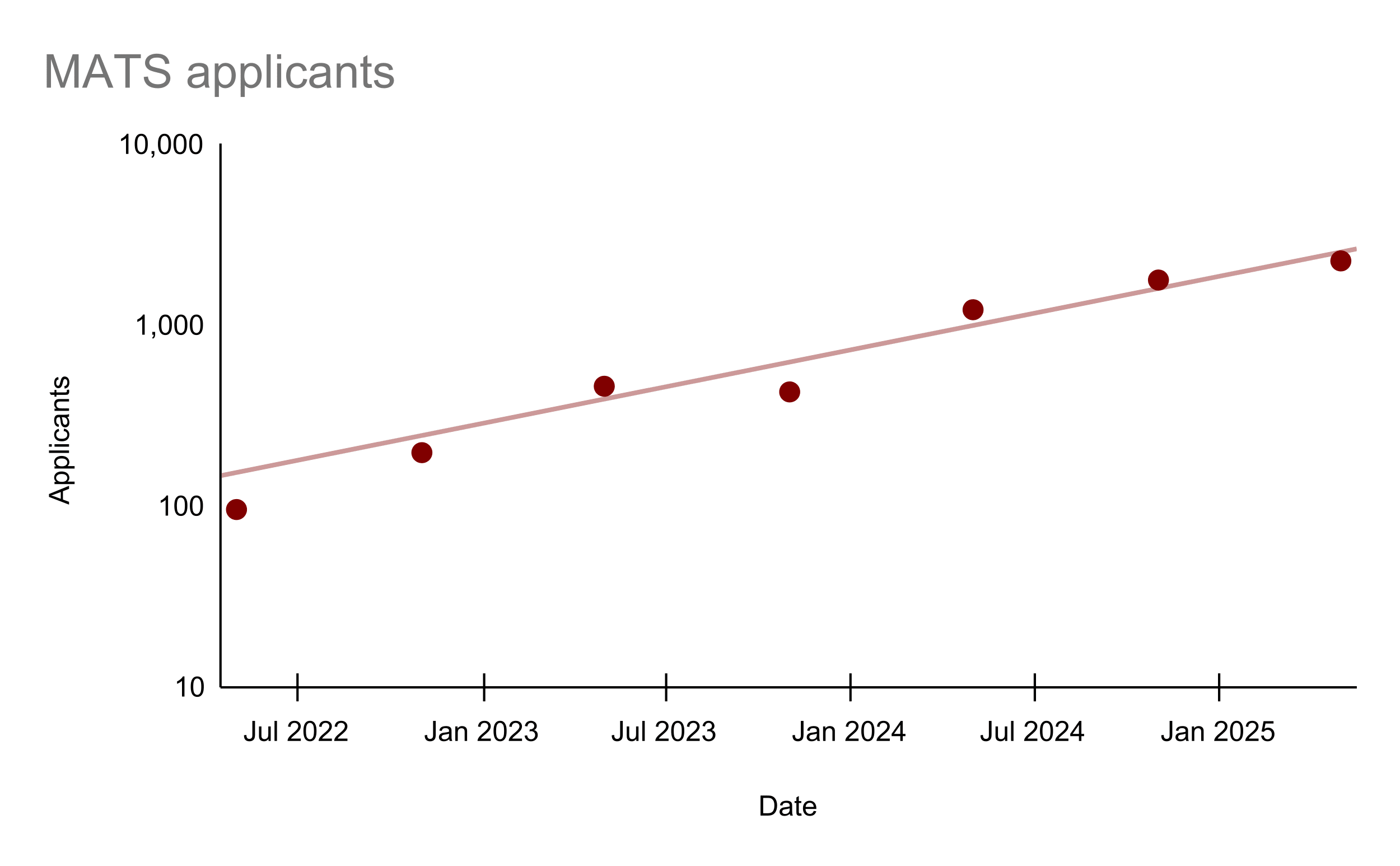 Applications to MATS have been increasing by 70% per year. Is this the growth rate of AI safety?
