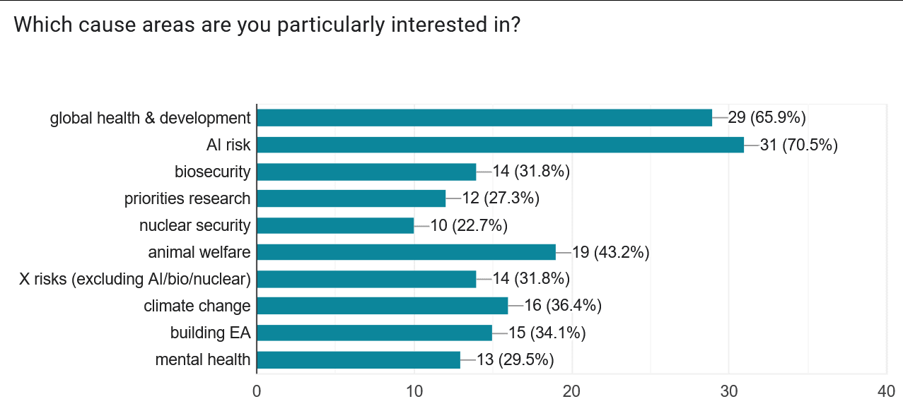 - Event structure and highlights: The program included talks, 1-1s, a career workshop, and community-building discussions; the career workshop and professional/cause-area meetups were especially appreciated.