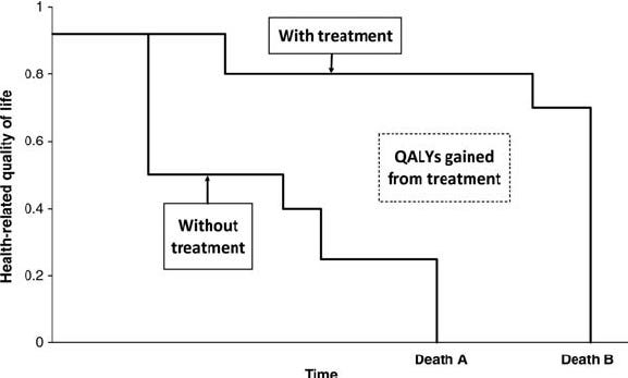 QALY as a metric kind of makes sense. Ideally you want your patient to be perfectly healthy, functional, and live long. A patient being non-functional and suffering for some time results in a drop in the metric. As does a patient dying early.