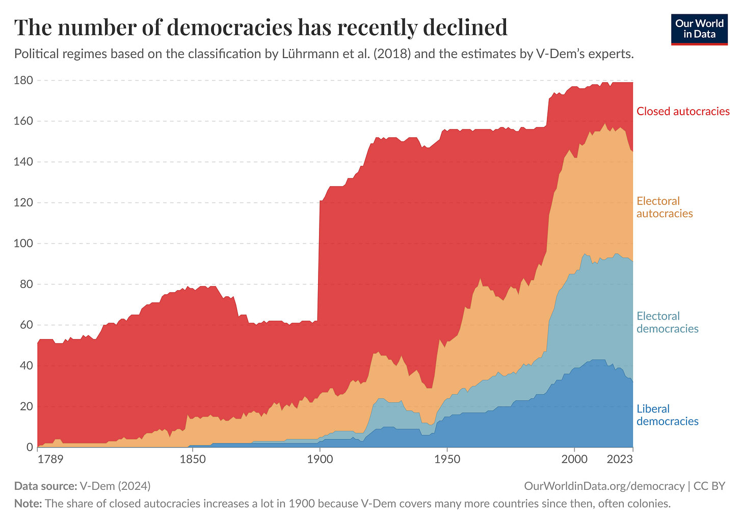 - Bastian Herre - 200 years ago, everyone lacked democratic rights. Now, billions of people have them - Although it’s not a linear path, there are lots of forward and backward steps