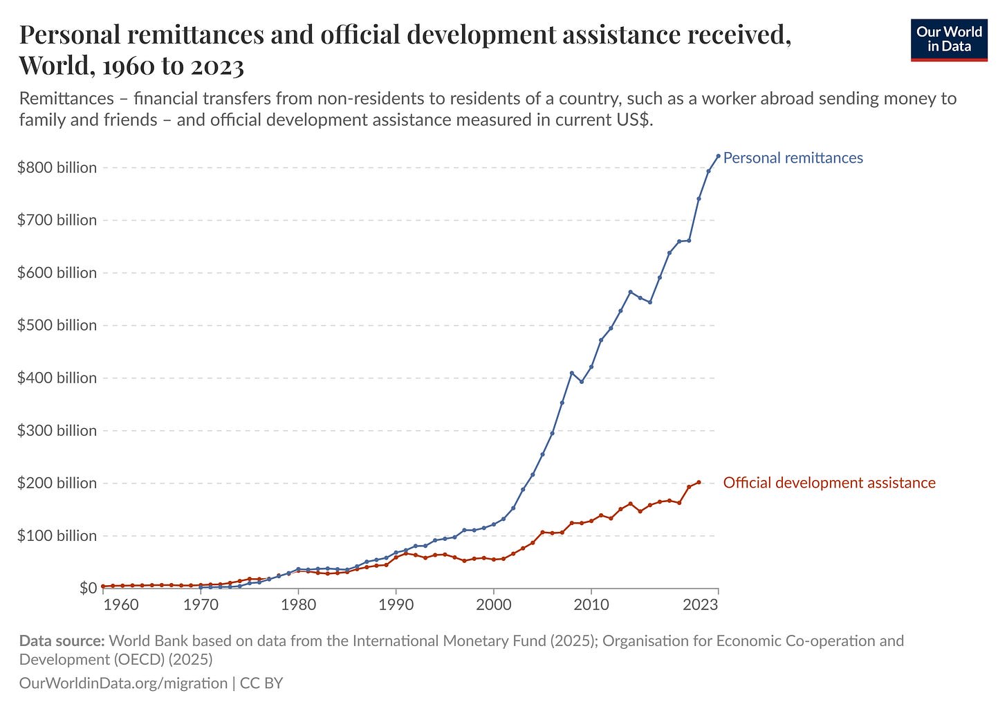 Our World in Data - The great global redistributor we never hear about: money sent or brought back by migrants (5 min)