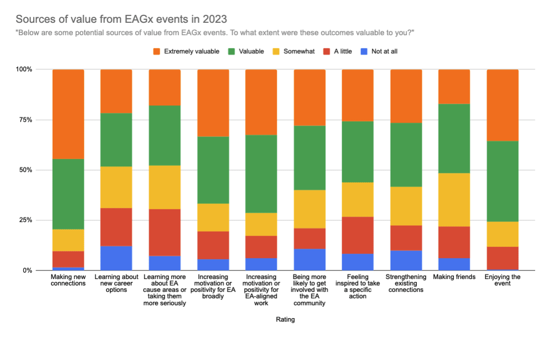 That said, I think the models here might benefit from looking at the existing data. Reading this post, you might think will be the first EA Global or EAGx event to take place—but there have been many, and we have lots of data on what people find useful.