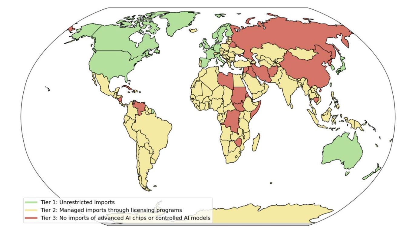 The AI Diffusion Framework. The final weeks of the Biden Administration saw three major actions related to AI policy. First, the Bureau of Industry and Security released its Framework for Artificial Intelligence Diffusion, which updates the US’ AI-related export controls. The rule establishes three tiers of countries 1) US allies, 2) most other countries, and 3) arms-embargoed countries.