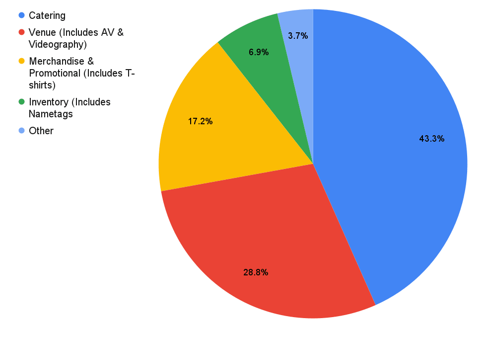 We quickly adapted to a venue change and selected Lunchworks as a reliable, affordable caterer. We were happy with their service. Unfortunately, we exceeded the catering budget due to accommodating multiple dietary requirements (vegan, halal, and allergy-specific), unplanned costs and expensive vegan and gluten-free snack options. We also over-ordered due to uncertainty because of our late registration timeline and 20% dropoff rate after registration. In future, we plan to close registrations firmly before catering numbers are required and account for a 35-40% no-show rate to avoid over-ordering.