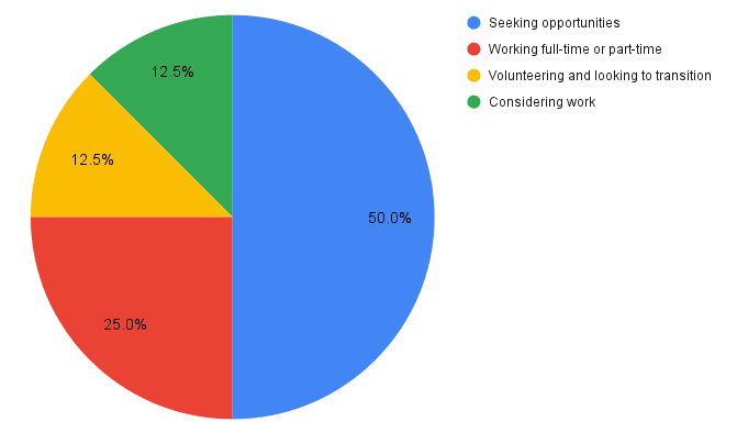 Most survey respondents are looking for opportunities in the field of their interest. This suggests a need for more career support and opportunities within these cause areas for the EA community in South Africa.