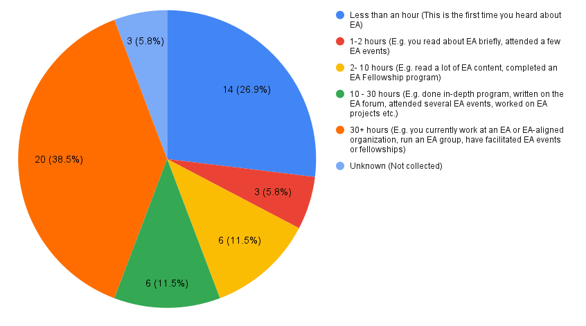 - The majority, ≈78% of respondents, said that the summit was a much better use of their time (>10x the counterfactual), while ≈22% said that it was a notably better use of their time (3–10x the counterfactual).