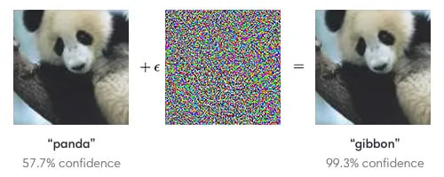 This AI image classifier correctly identifies the first image as a panda. But once the image is altered slightly with an adversarial attack, the AI incorrectly classifies it as a gibbon.