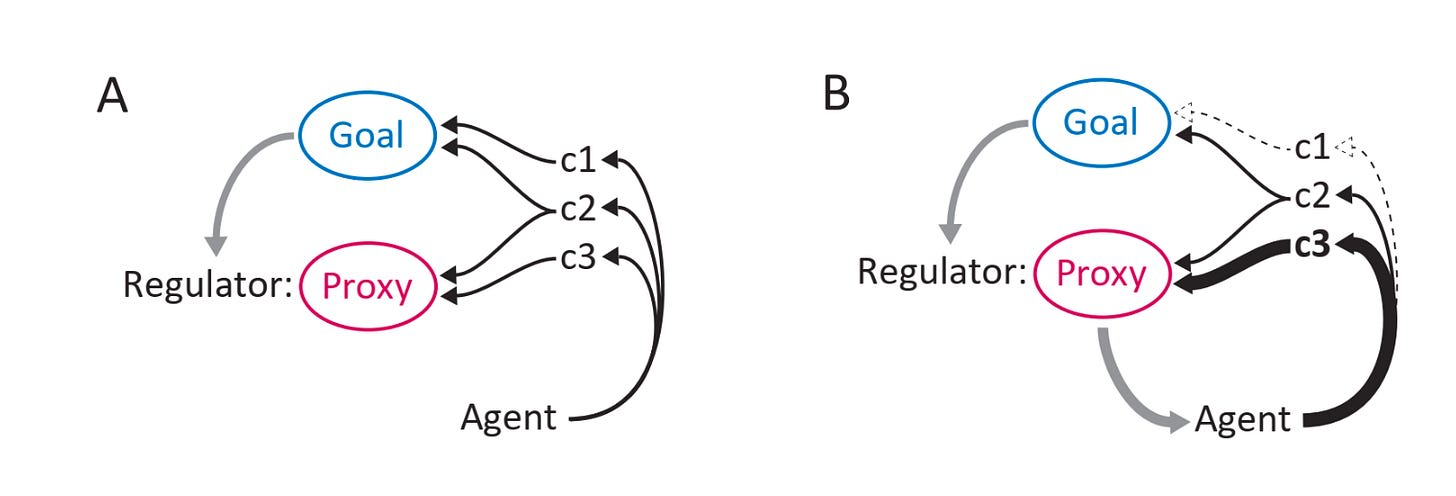 For example, if the regulator is an AI developer, the goal some intended behavior, the agent an AI system, and the proxy a reward function, then we should expect the AI’s behavior to diverge from the intended behavior.