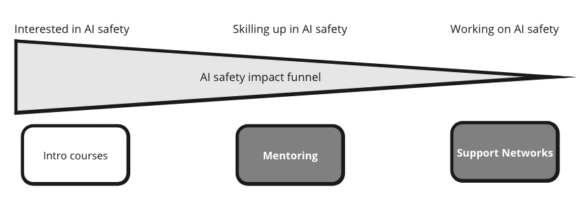 - We identified the following priorities: (1) find solutions for advanced engagement post AI safety fundamentals course, (2) develop a strategy for engaging with established academics, (3) co-organise one national advocacy event, and (4) increase operational capacity